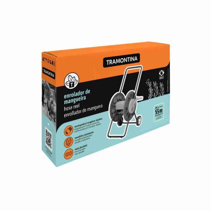 Enrollador de manguera con ruedas y 2 acoples rápidos hasta 55 m de manguera de 1/2″ Tramontina