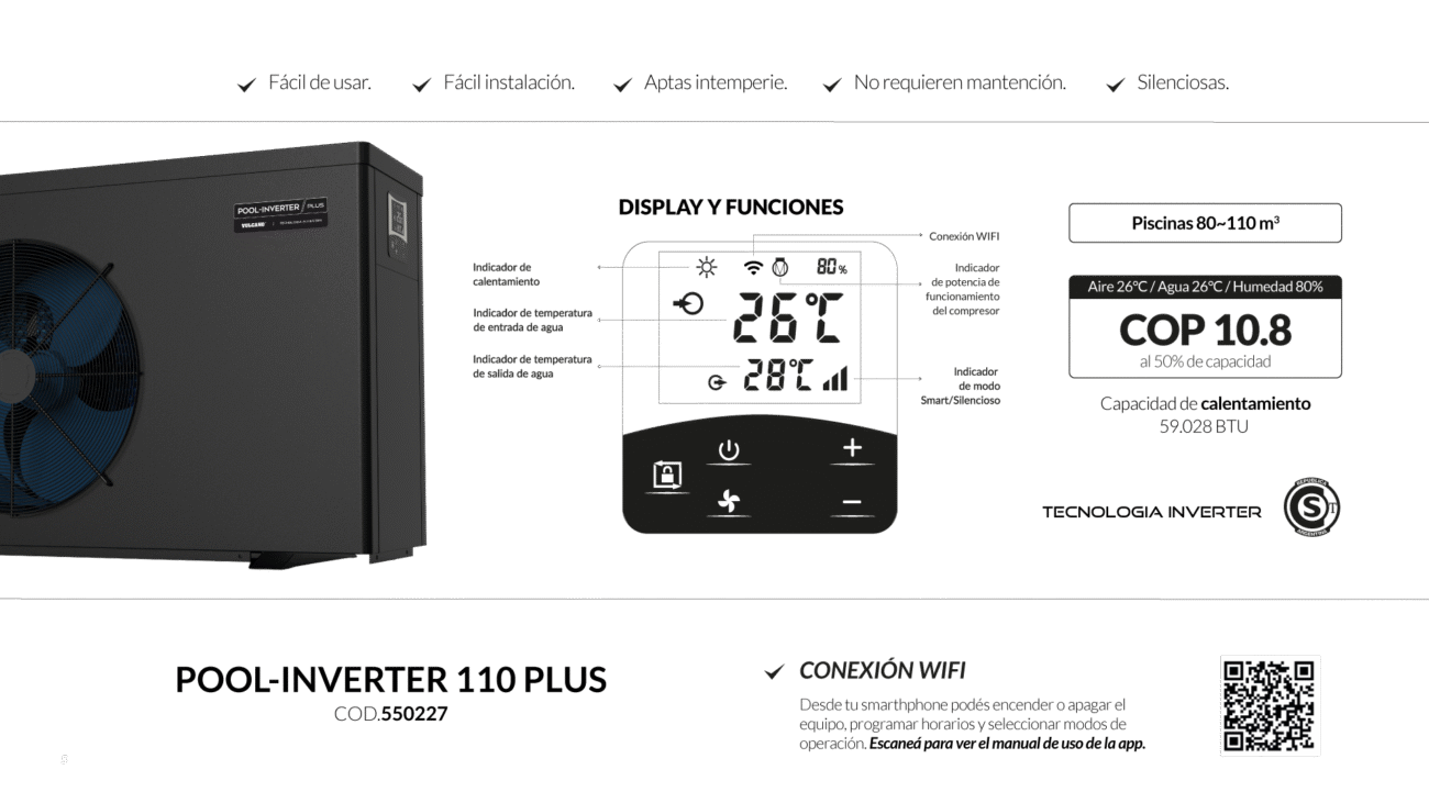 Las bombas de calor para piscinas POOL-INVERTER PLUS son una solución confiable y avanzada para quienes buscan mayor confort, menor consumo y una experiencia más prolongada de uso de la pileta.