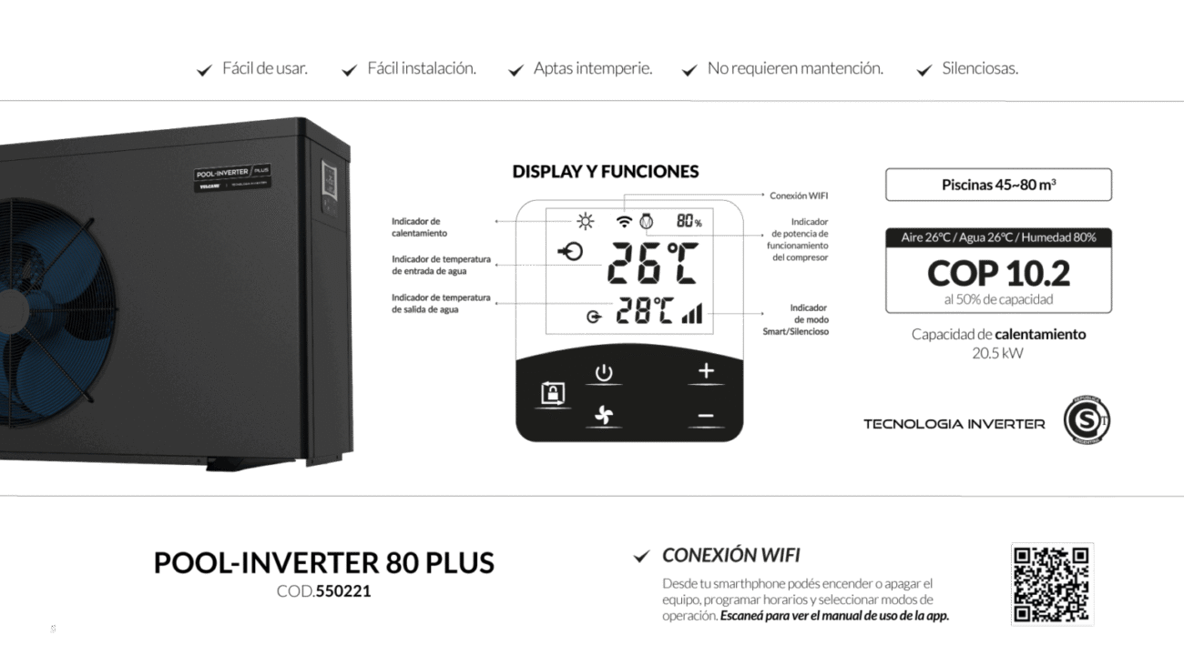 Las bombas de calor para piscinas POOL-INVERTER PLUS son una solución confiable y avanzada para quienes buscan mayor confort, menor consumo y una experiencia más prolongada de uso de la piscina.