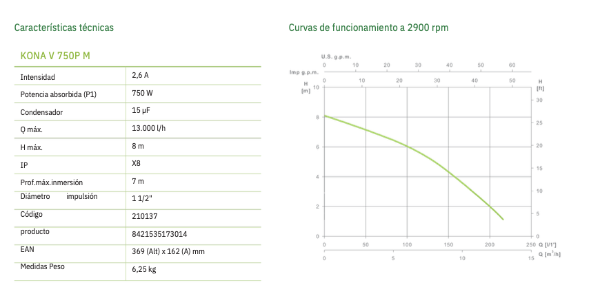 BOMBA SUMERGIBLE ESPA LEADER MODELO KONA V 750P M PARA AGUAS SUCIAS