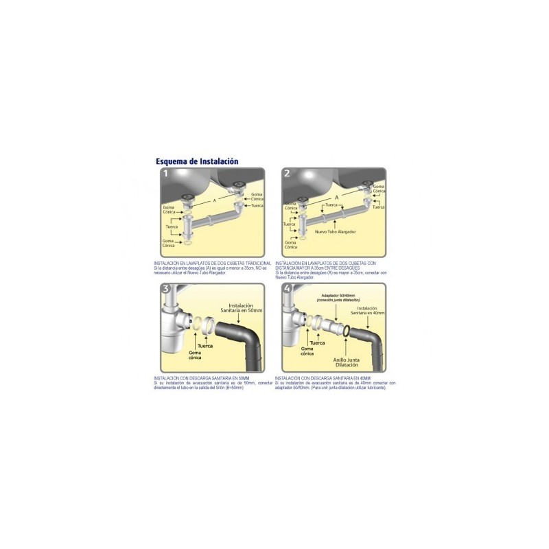 • Accesorio especialmente diseñado para conectar dos desagües en los modelos de lavaplatos de dos cubetas.