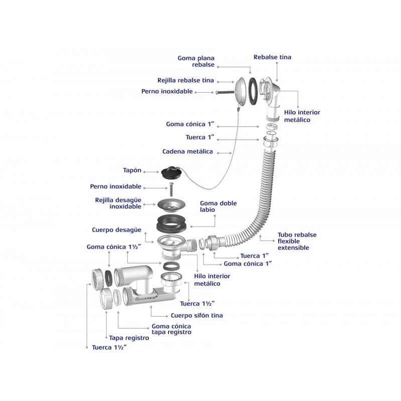 • Nueva goma desagüe de doble labio permite sujeción del cuerpo del desagüe a la tina (no se desprenden).