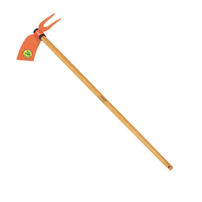 Escardillo dos puntas, mango de madera de 120 cm, para quienes precisan una herramienta versátil para trabajos de jardinería y agricultura, el escardillo dos puntas de Tramontina es la opción ideal. Las dos extremidades con formatos diferentes se pueden usar para varias actividades, tales como desmalezar, abrir canaletas o incluso como sustituta de la azada para tareas menores.