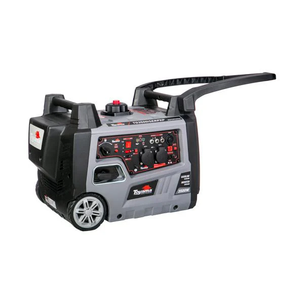 El generador de energía Toyama TG3500iSERP-XP-220 está diseñado para uso profesional, equipado con un motor de gasolina de 4 tiempos y 192 cc monocilíndrico, enfriado por aire. Proporciona una potencia máxima de 3.5 kVA a una salida de 220V monofásica. Este modelo incorpora un alternador síncrono de imán permanente y un módulo inversor electrónico de tensión, garantizando ondas senoidales puras sin distorsiones armónicas, lo que lo hace seguro para equipos sensibles.