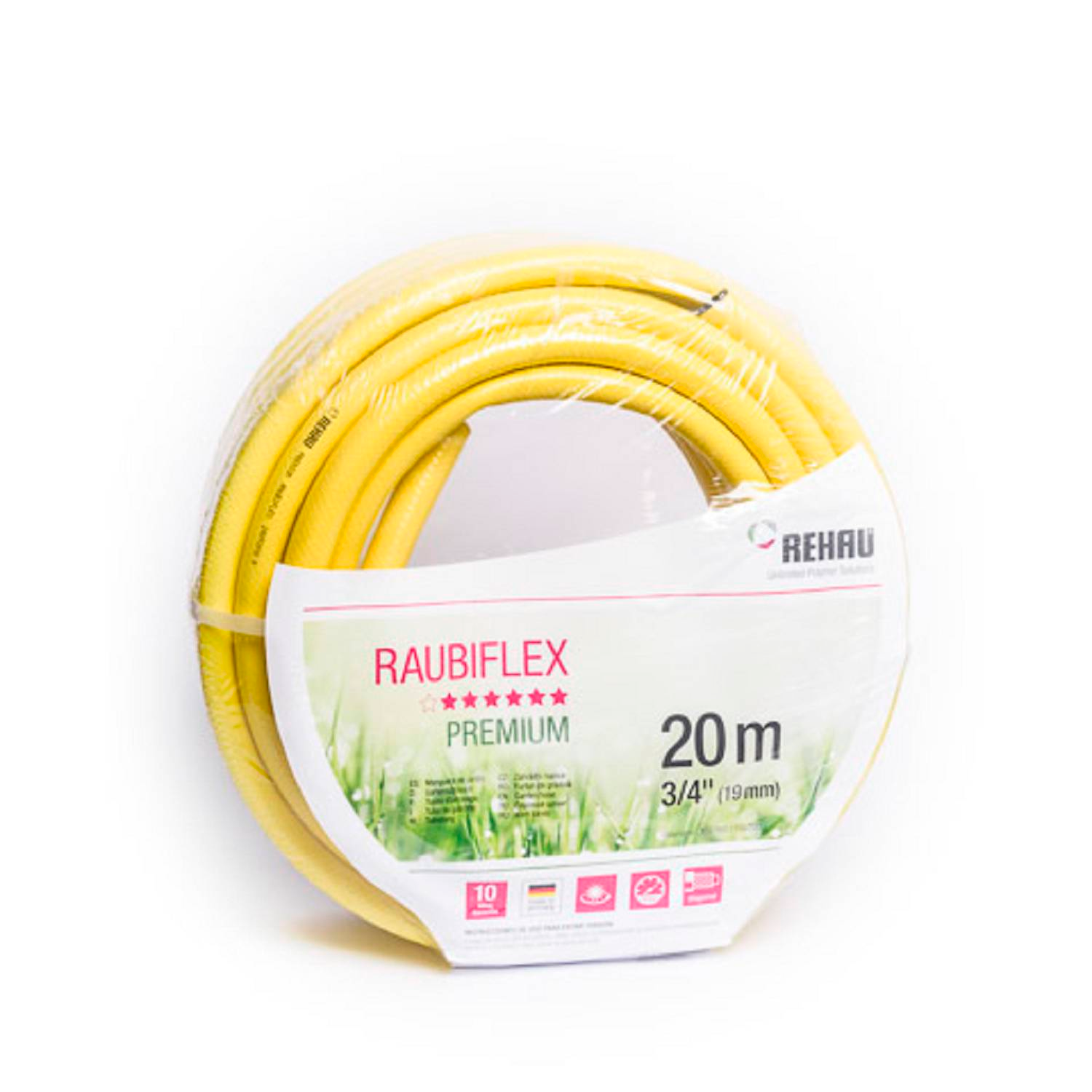 La manguera de jardín Rehau Raubiflex Premuim de ¾” de 20 metros esta confeccionada en Alemania bajo los más altos estándares de calidad y con una garantía de 10 años.