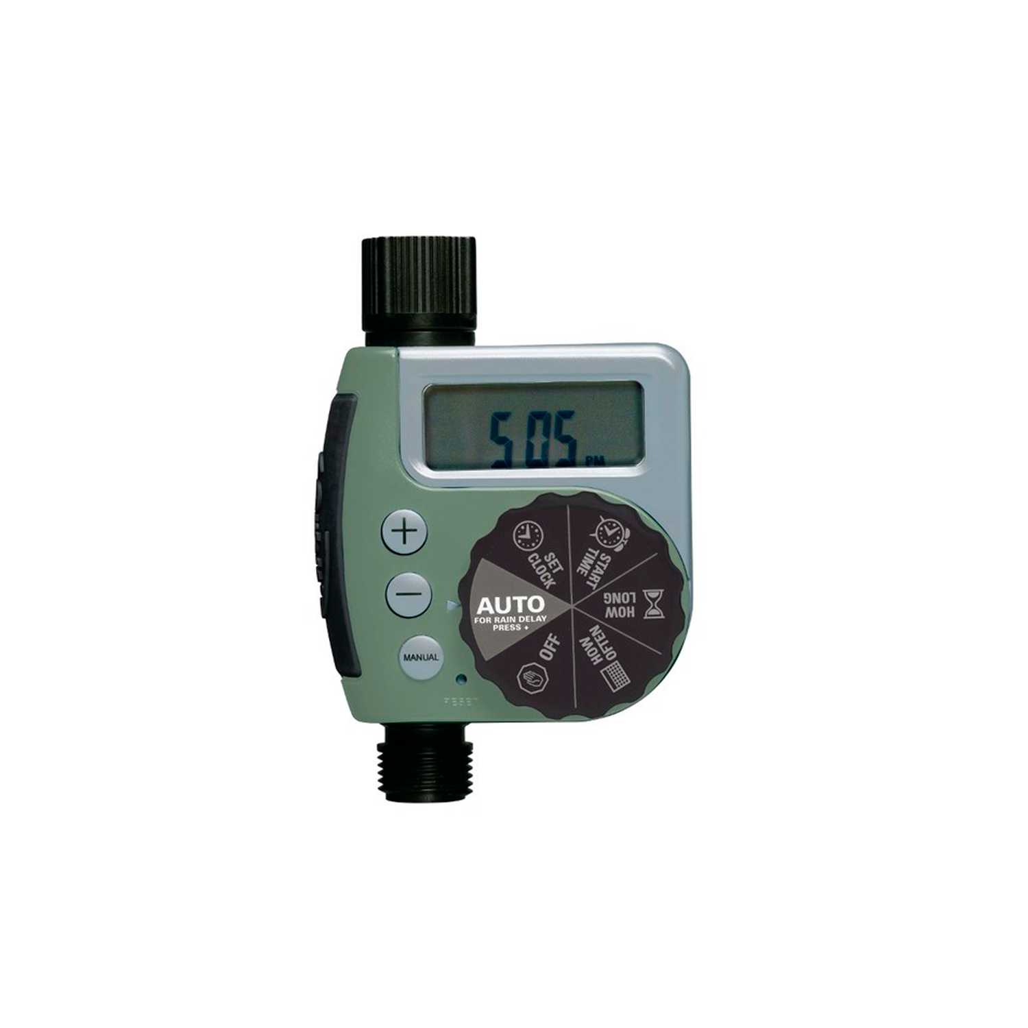El programador Buddy de Orbit es ideal para implementar en jardines de tamaño pequeño o medianos que no tengan un sistema de riego instalado. Se conecta directo a la llave de jardín y se programa el tiempo y hora de riego según las necesidades o la época del año.
