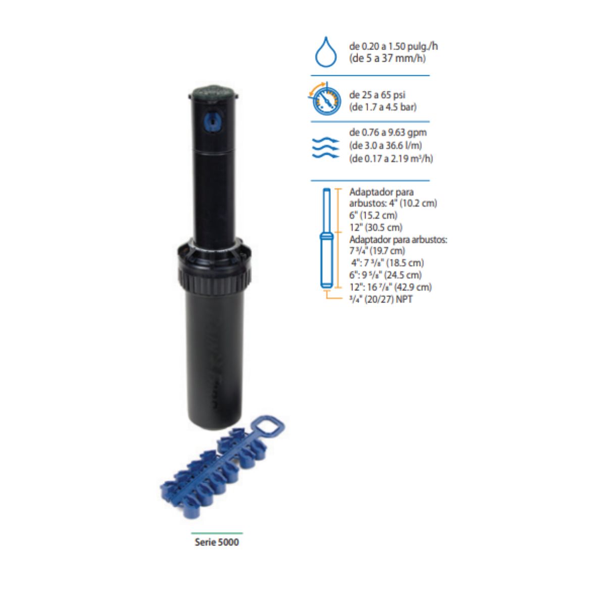 • Tecnología Rain Curtain: Incluye toberas de alto rendimiento que generan gotas más grandes para resistir el viento y asegurar un riego suave de corto alcance, eliminando puntos secos.