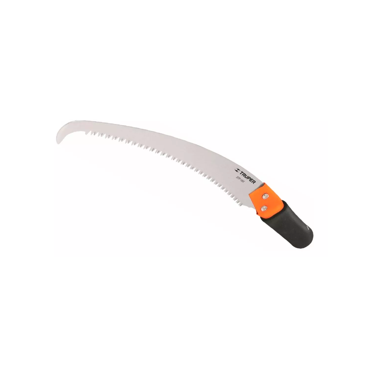 Serrucho truper para podar ramas gruesas. Tiene un gancho tope para facilitar los cortes y trabajos en altura y su mango con grip asegura comodidad y un agarre seguro. Es compatible con el mango telescopico Truper Largo total: 56 cm Largo de hoja: 40 cm